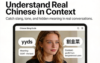 中国のスラング翻訳者は、現代中国のインターネット言語の理解を深めるために設計された無料のChromeアドオンです。これは、ウェブページ上の選択されたテキストの文化的文脈、潜在的な意味、感情的なトーンを捉えた自然な英語の翻訳をユーザーに提供します。このツールは、Weibo、Bilibili、Douyinなどのスラングが豊富なプラットフォームをナビゲートするのに特に便利です。